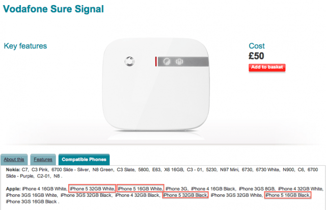The UK iPhone carrier vodaphone has leaked that the iPhone 5 might only be a 16/32GB capable device. The image you see above comes from the Vodaphone showing off a sort of MIFi type device and showing the compatible devices showing the current iPhone 4 models. That isn’t the thing though the site states the MIFi like device is compatible with the iPhone 5 white/black and 16/32GB. There is nothing saying there is a higher storage. So at least we will get a white iPhone 5 from the launch but we might have to wait another year for a 64Gb iPhone. Hey maybe Apple will surprise us during the music event with a 64Gb model! Never know.