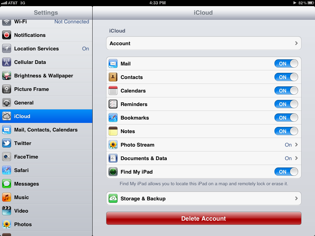 This is what is the biggest feature and most important in my case for iOS 5. By now you have all probably researched iCloud and you know what it does. Basically iCloud is a server. It will upload all your documents and back up your whole iDevice if you tell it too. Also you can get a me.com email so your email will be pushed throughout your devices. It will sync your photos amount your iDevices and your mac. Also your bookmarks and reminders. This is better than mobile me all though in the transition some mobile me things will no longer be available such as iWeb after the first year of iCloud. It is amazing and easy and when you are able to get our hands on it with your mac and iDevices you will love it I promise.