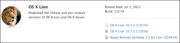 OS X Lion 10.7.3 available for Download [Developers Only]