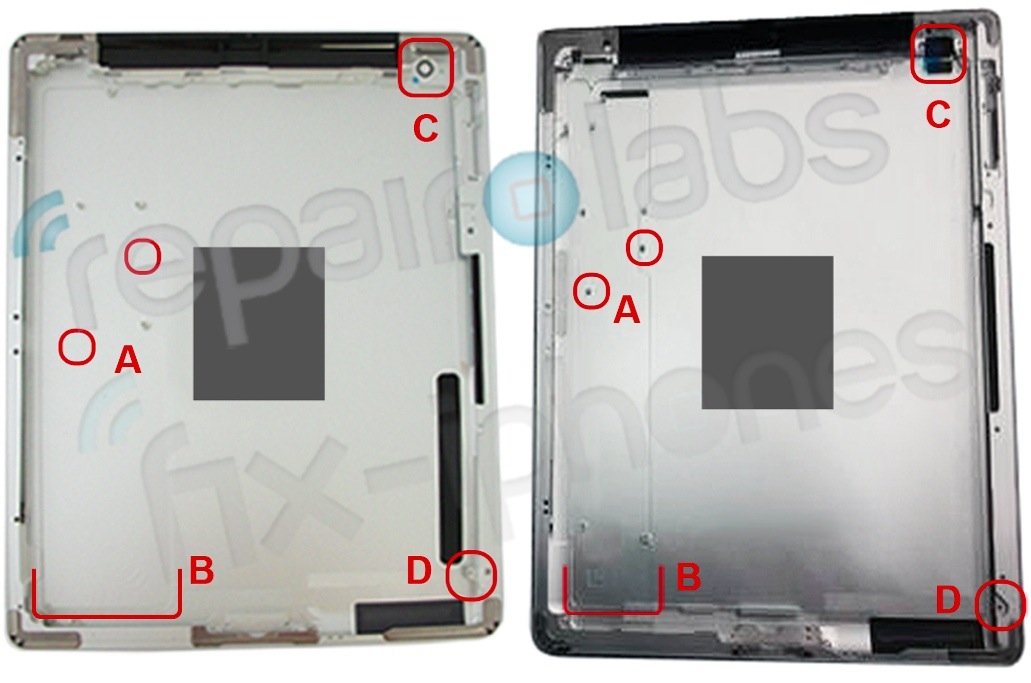 It seems we are very close to an Apple iPad 3 event as the back casing of the device has emerged. Or so we think is the back casing. The back seems to have the same design but with a larger camera hole. The left is the iPad 2 and the right is the iPad 3 reported casing. Here is what each number stands for.