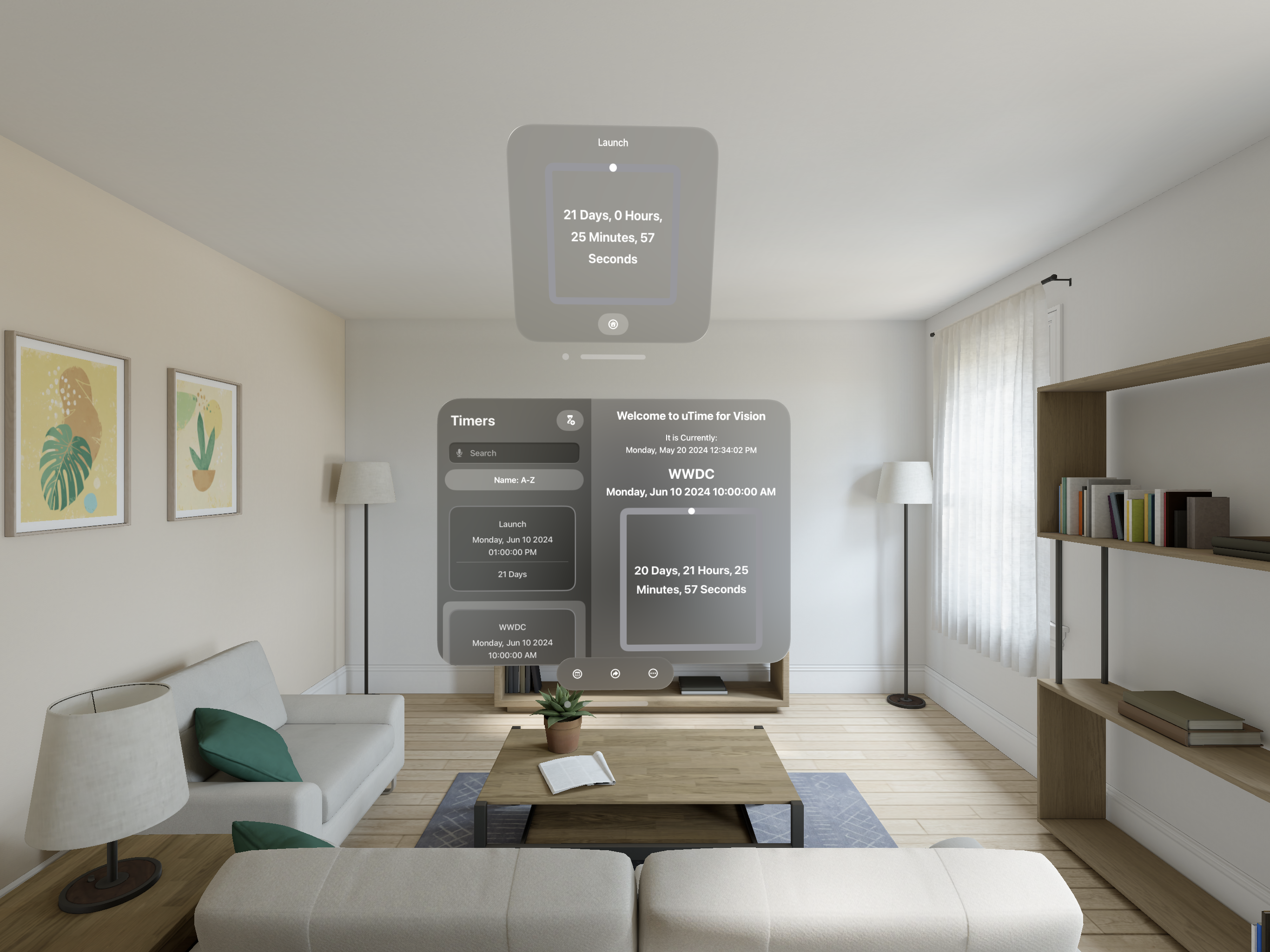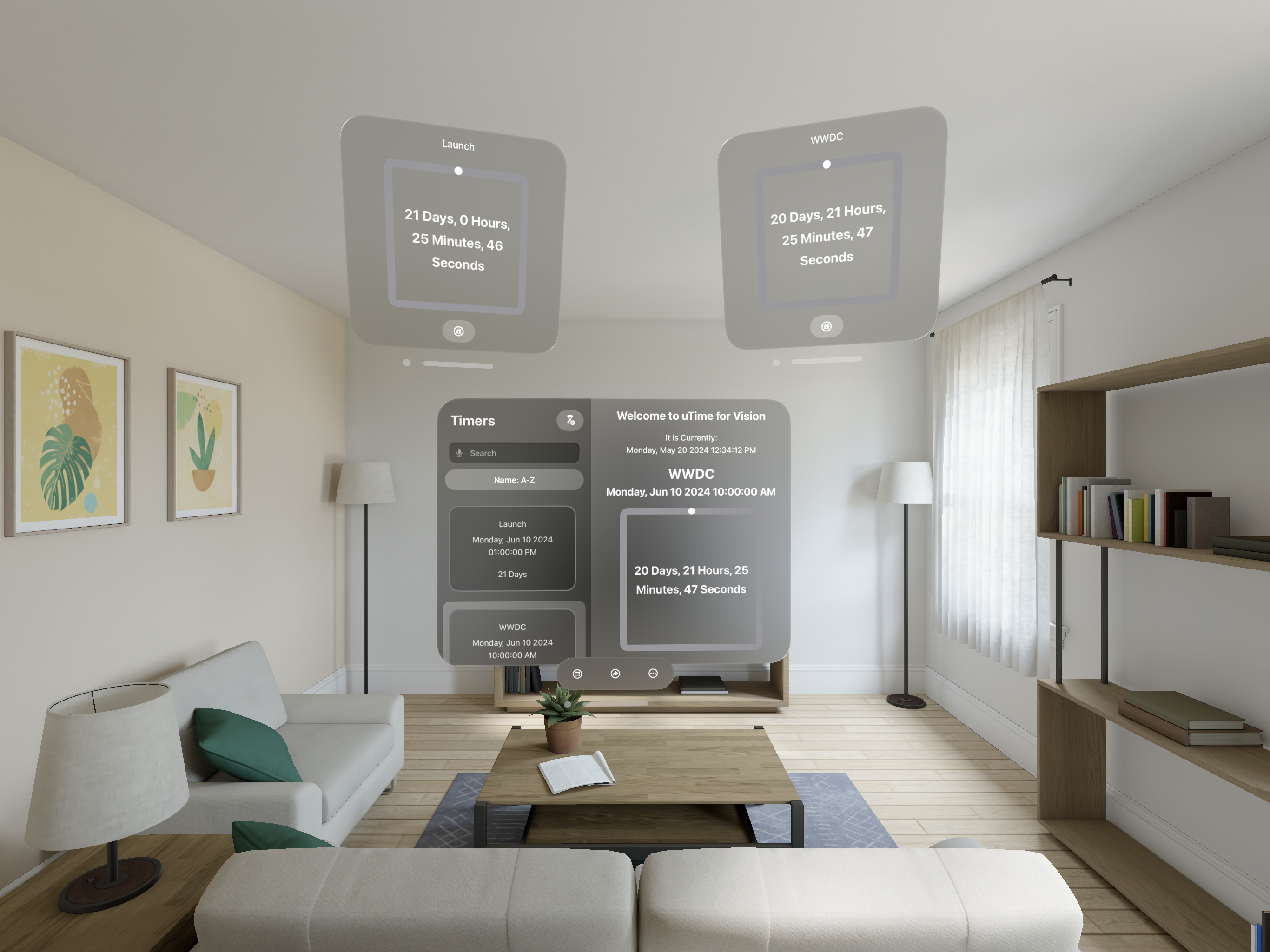 uTime Vision automatically syncs with iCloud. Timers from your iPhone, iPad, or Mac will effortlessly appear. VisionOS timers will also sync back to your devices.